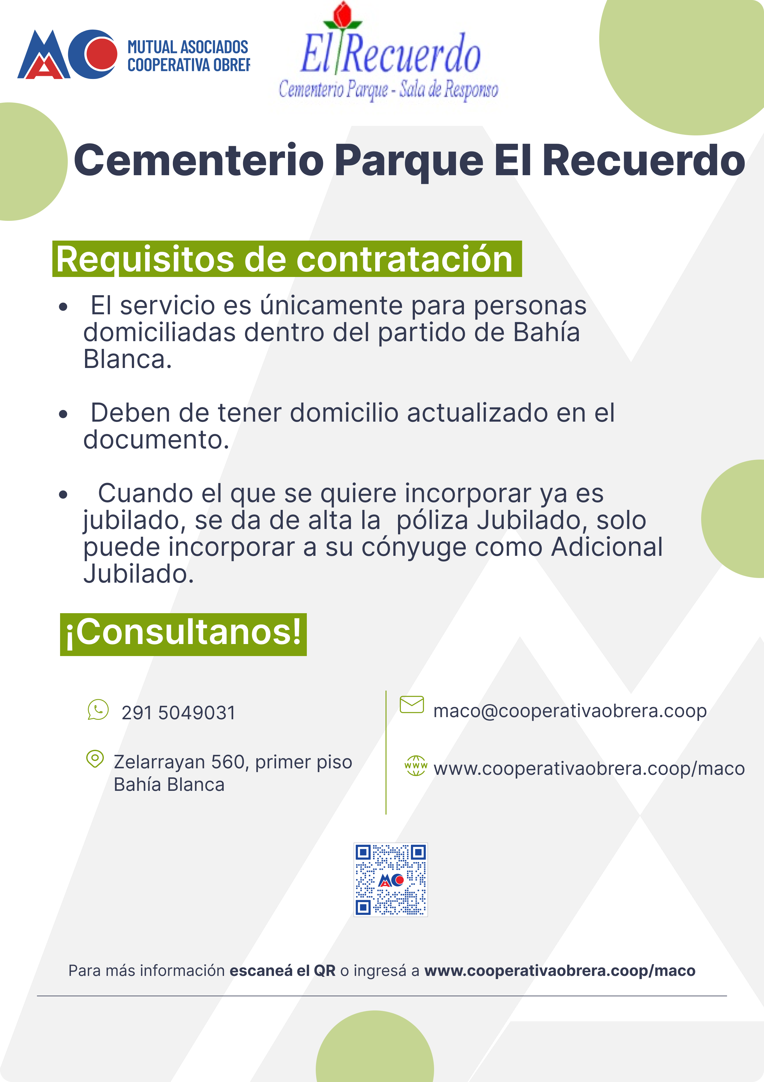 La Mutual ofrece el servicio de sepelio e inhumación para sus asociados con la empresa Cementerio Parque El Recuerdo