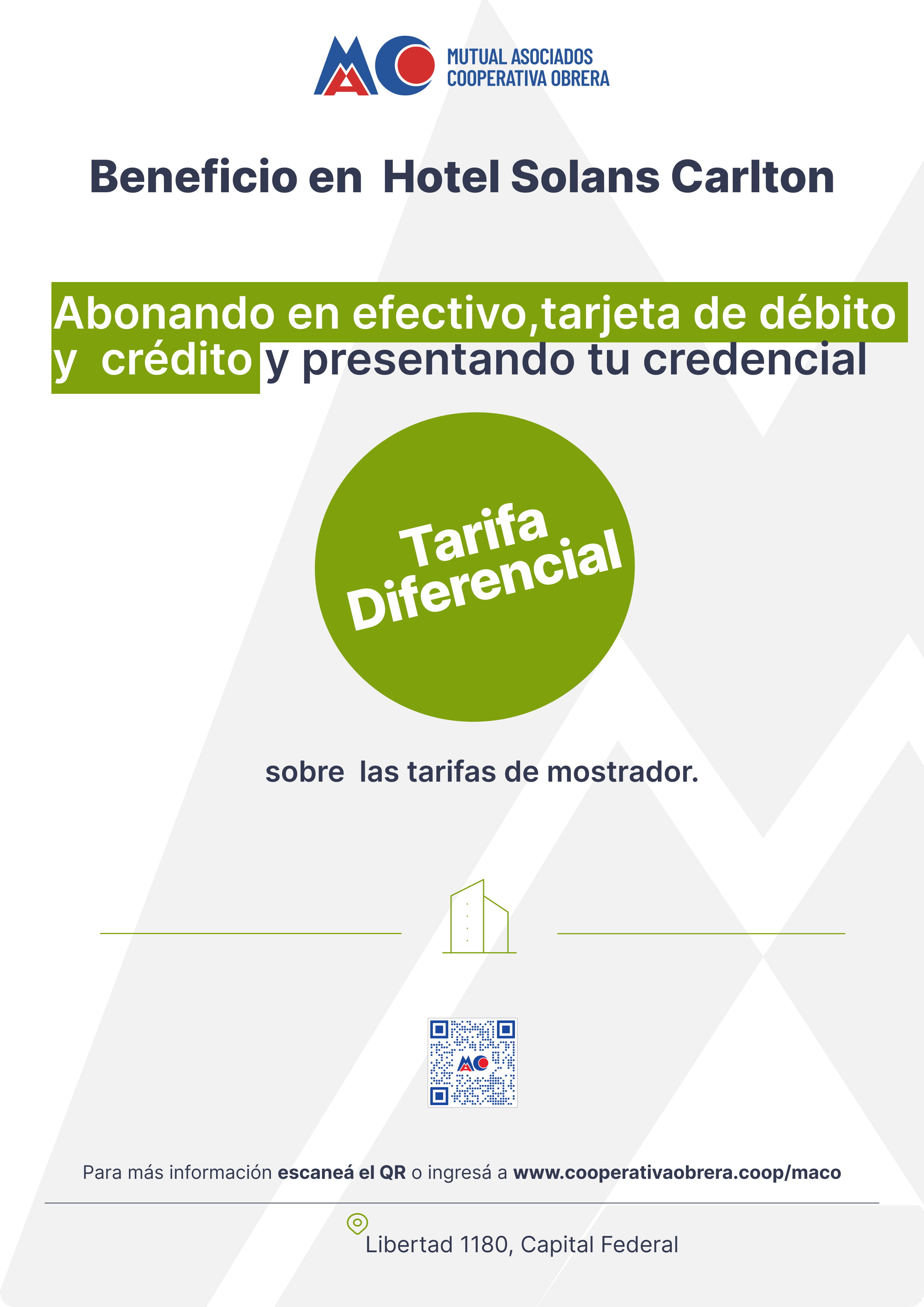 El beneficiario para poder obtener su descuento, deberá presentar y acreditar en el hotel, su condición de integrante de la Mutual Asociados Cooperativa Obrera con la credencial identificatoria que posee.