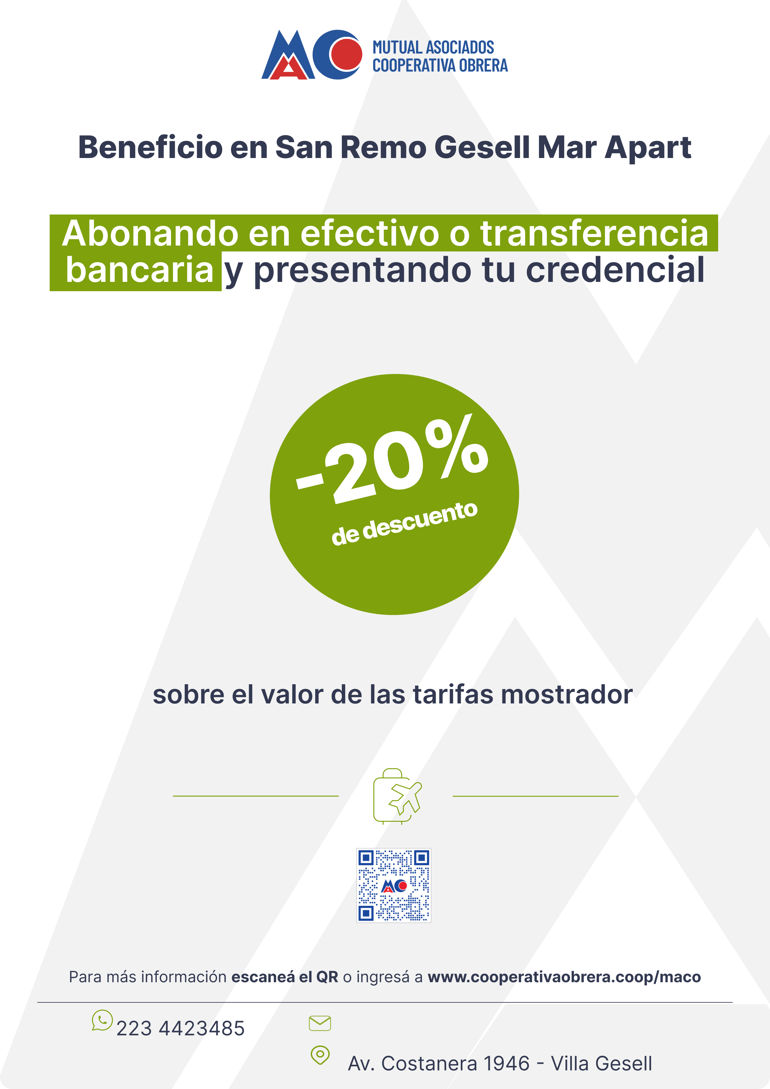 Para realizar reservas deben enviar un mail a la casilla sindicatosymutuales@sanremohoteles.com indicanto: