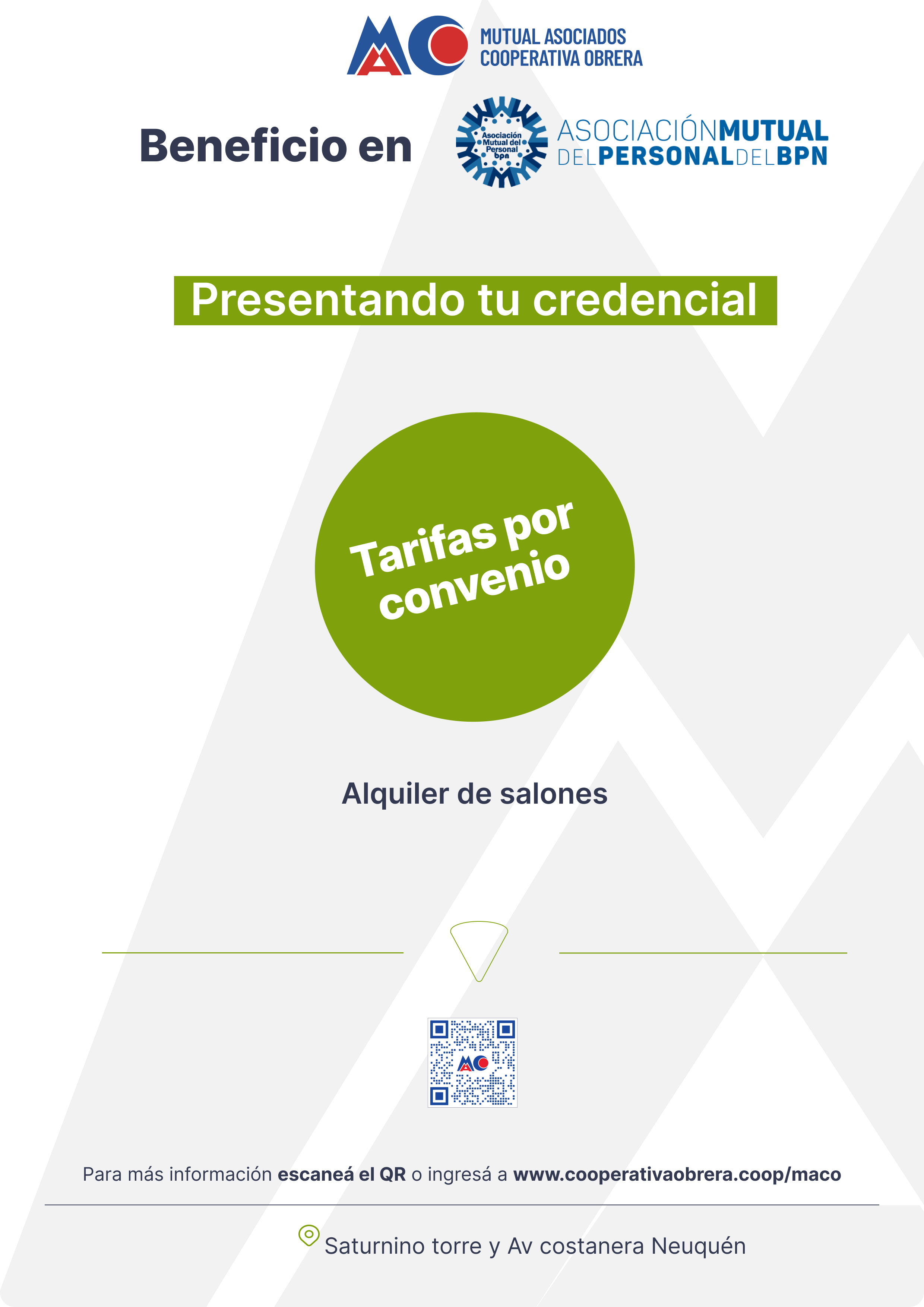 Para el alquiler de salones deberan acercarse a el complejo recreativo A.M.P.B.N, Saturnino y Av costanera, Neuquén o comunicarse al Whatsapp 299-4221243
