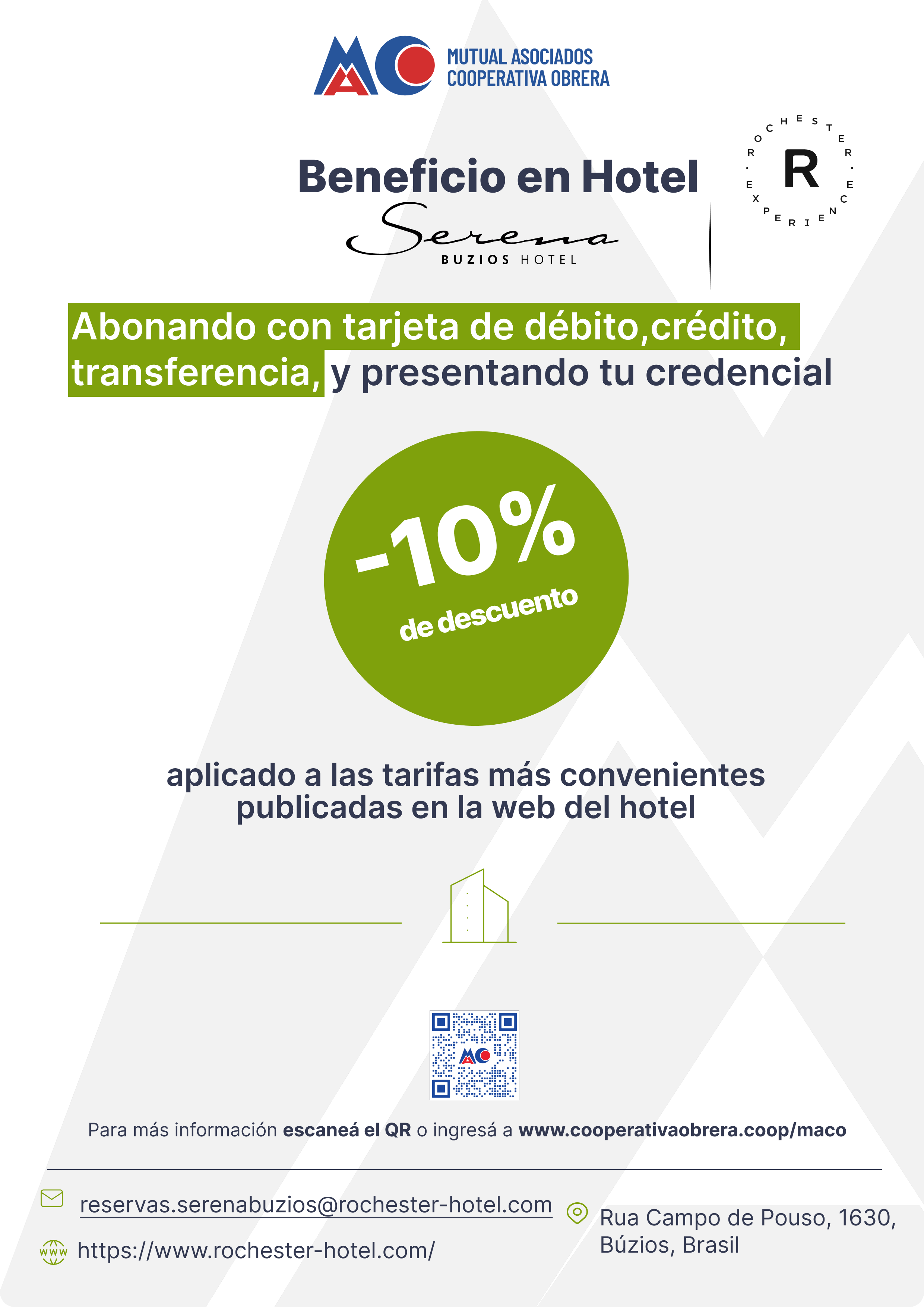 Al momento de utilizar el servicio deberán presentar la credencial identificatoria de MACO y el último recibo de cuota paga.