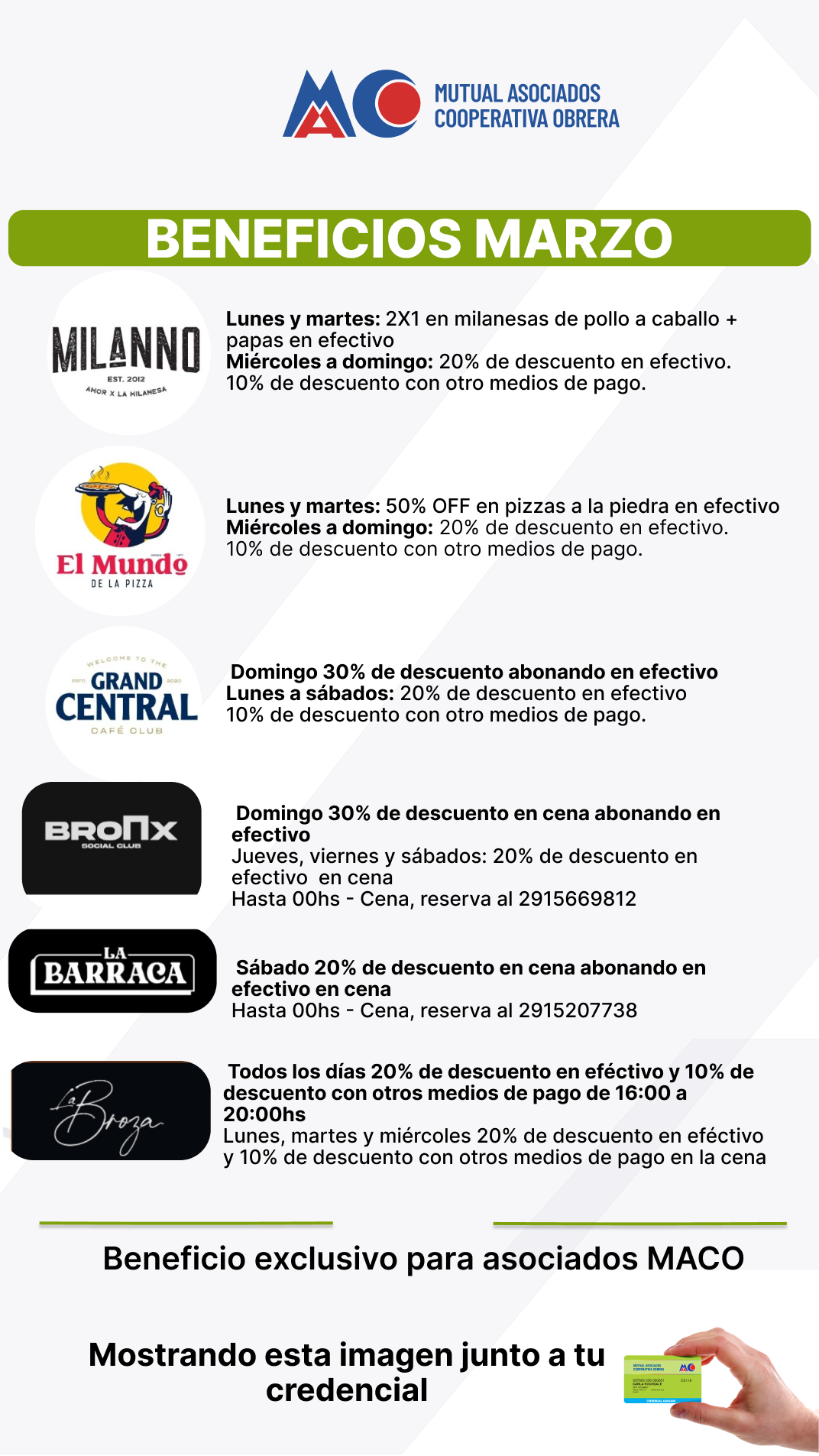 Se aplicará el beneficio presentando la credencial identificatoria como asociado a MACO.